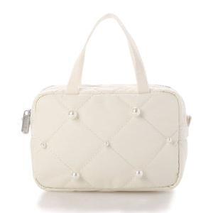 パールが魅力的なハンドル付きスクエア型ポーチです。コンパクトながらも使いやすいデザインです。