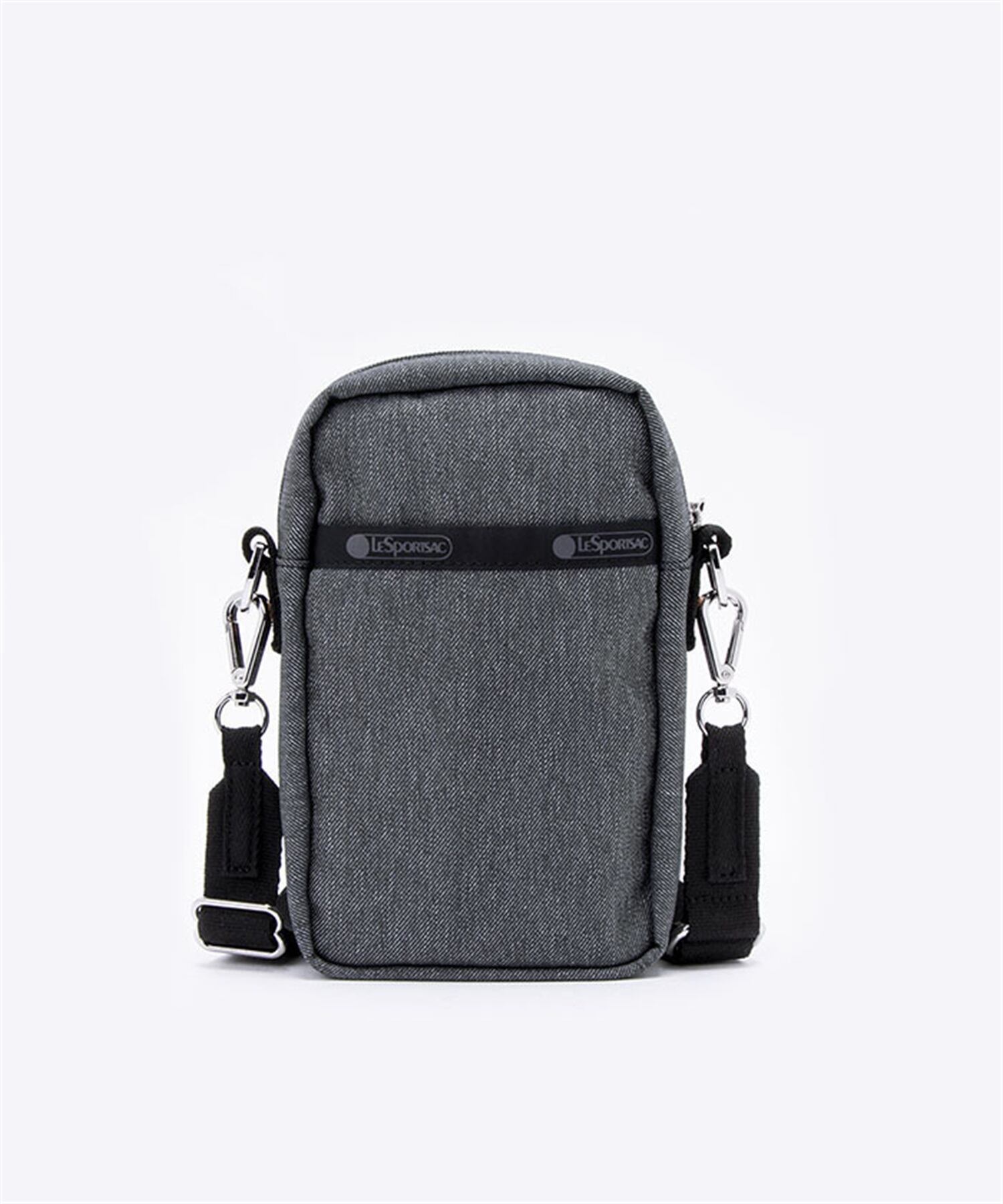 LeSportsac / レスポートサック/DENIM PHONE CROSSBODY/ブラックデニム/レオパードシェルパ/レオパード柄/スマホショルダーバッグ/斜めかけスマホポーチ/